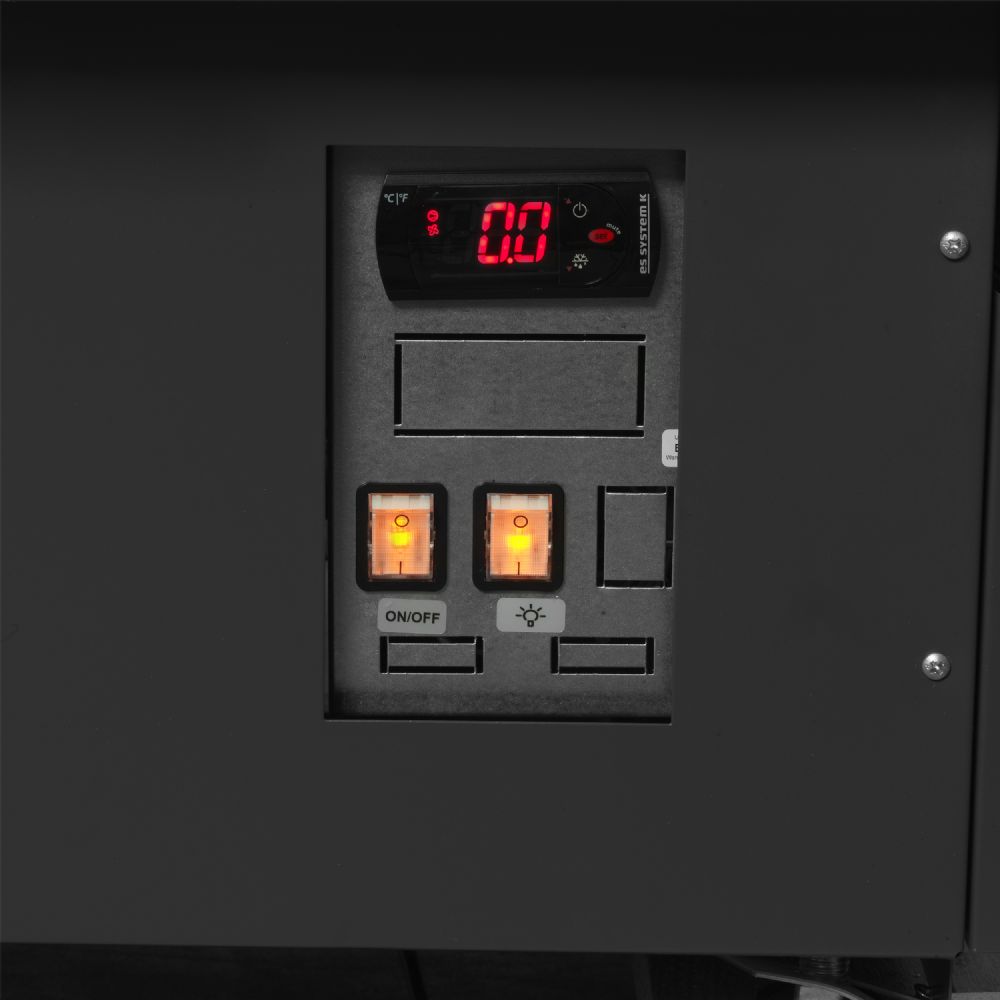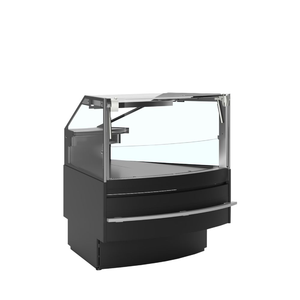 Sort design|Ventileret køling|Frontglas med anti-kondens|Multiplexing-sæt er tilbehør|LED toplys|Fenderlister i rustfri stål|Fremragende produktsynlighed|Glasfront løftes op fortil for nem rengøring|Rustfri stålhylde på bagsiden
