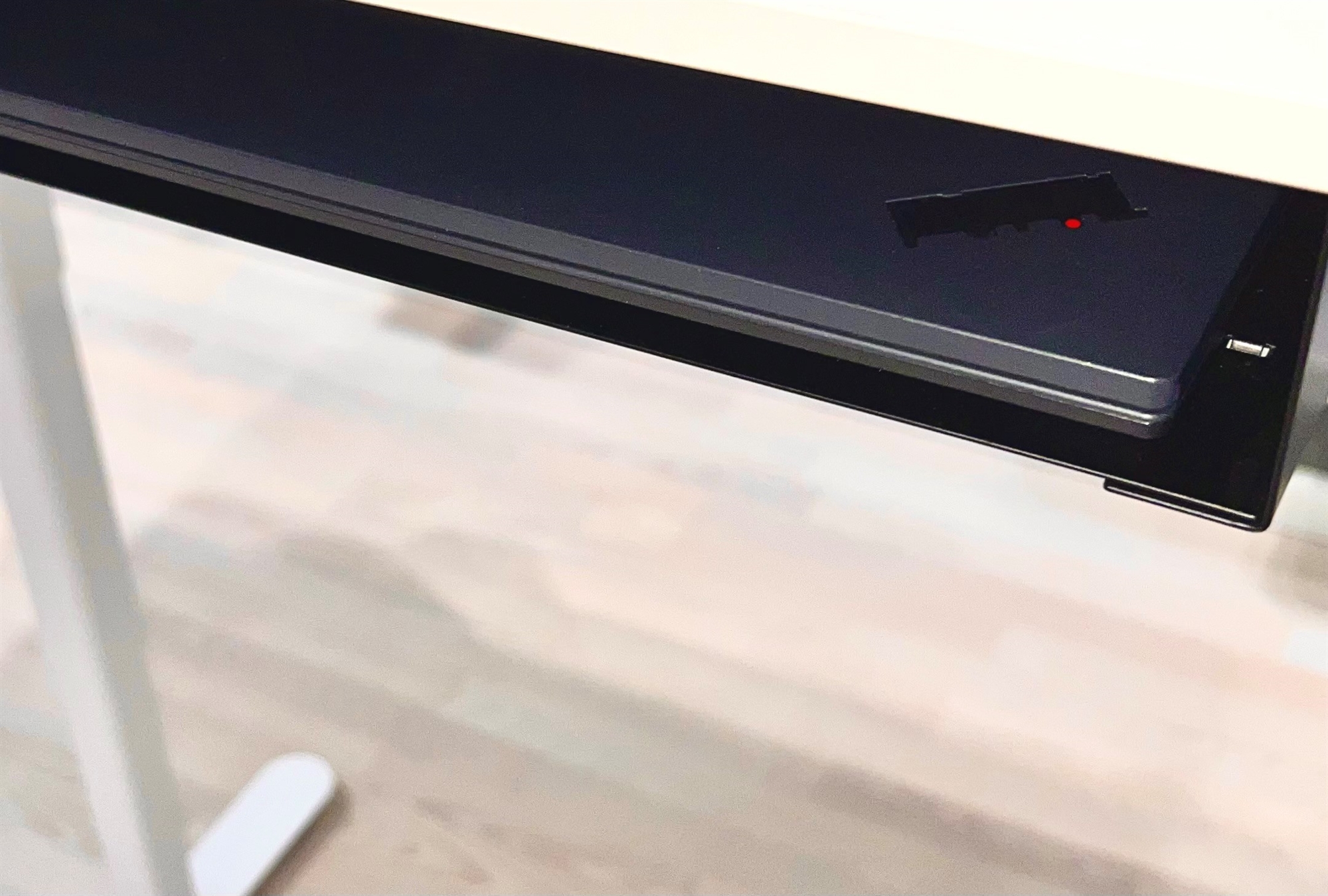 Complement COM16-5 opbavaringshylde i sort til montering under skrivebordet.Complement COM16-5 opbavaringshylde i sort til montering under skrivebordet.Complement COM16-5 opbavaringshylde i sort til montering under skrivebordet.Complement COM16-5 opbavaringshylde i sort til montering under skrivebordet - her vist med en bærbar PC.