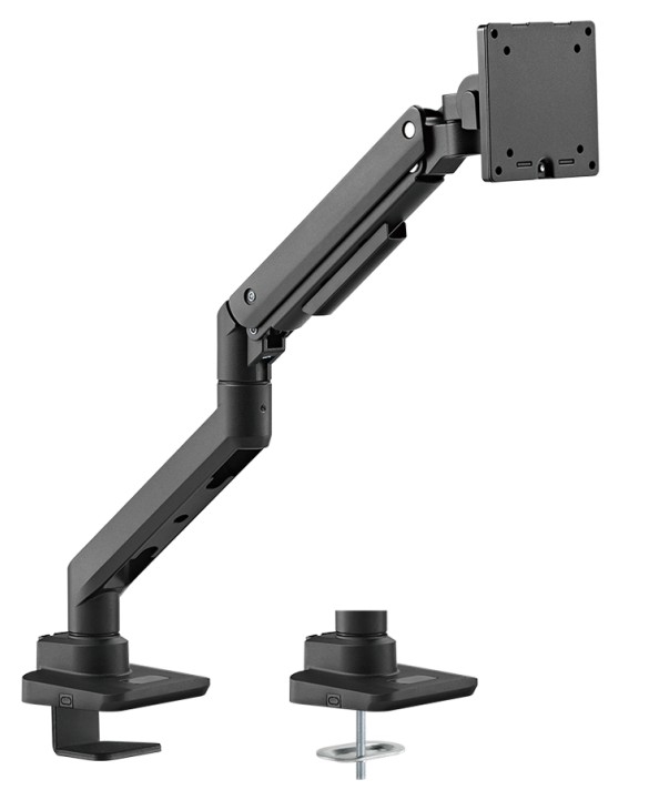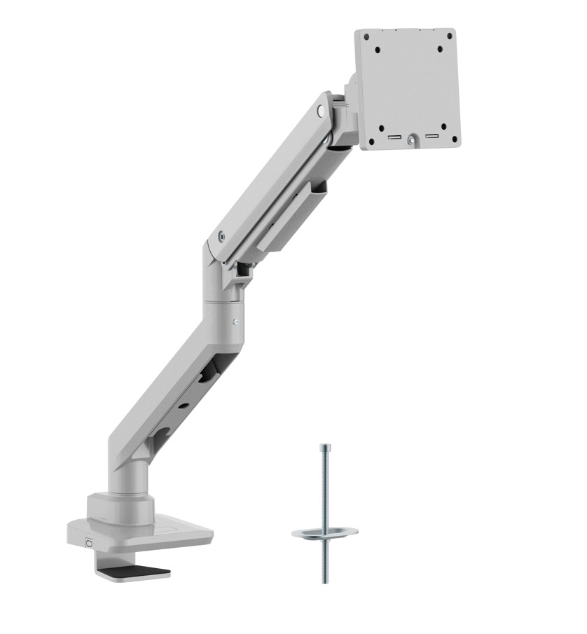 Denne skærmarm til 1 skærm er gasfjederstøttet til nem justering for den bedst mulige ergonomiske komfort. Den kan monteres med én hånd på bordpladen og justeres uden brug af værktøj.