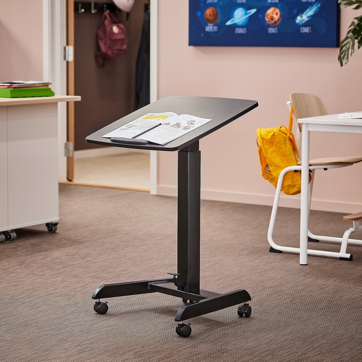 Mobil arbejdsstation i sort med hæve- og vippe funktion.