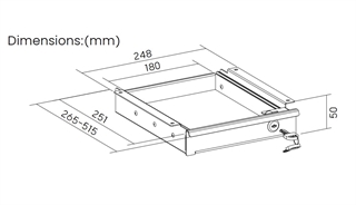 Stregtegning med mål af pennebakkeskuffe LU-COM248B fra Complement.