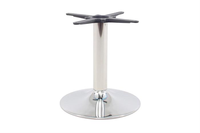 Flot søjlestel i krom der passer til plade størrelser Ø60-120 cm. Dette er et meget stabilt søjlestel. Foden er trompetformet. Stellet kan uden vægtplade monteres med bordplade op til Ø100 cm.