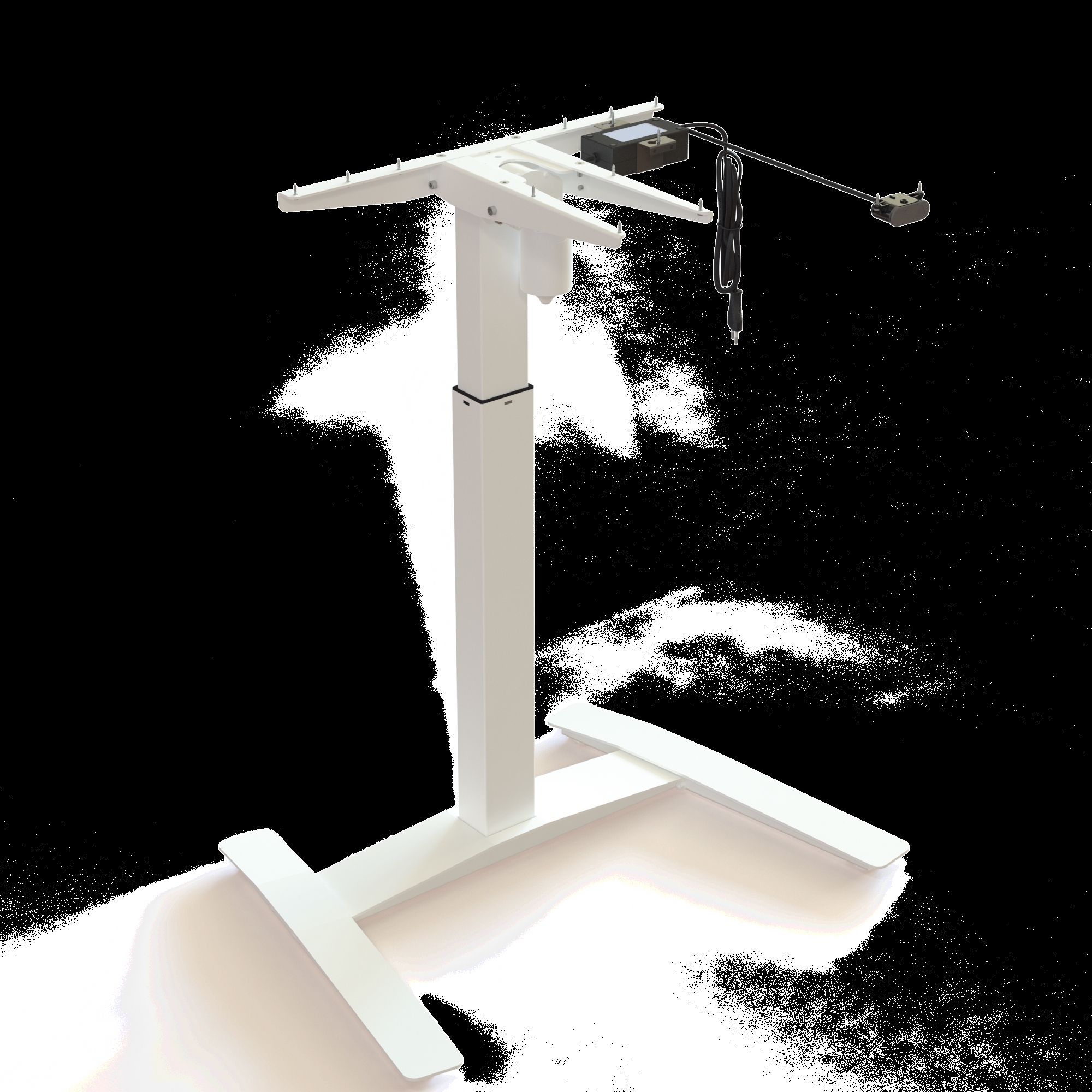 Et et-søjlet hæve/sænke-stel med et simpelt design og en elegant fod. Fodens form giver masser af benplads, når man sidder ved bordet. Stellet er lavet i pulverlakeret stål. Stellets størrelse gør, at det passer ind mange steder, og i kombination med hjul og batteri har stellet fuld mobilitet – det er nemt at flytte, og ingen ledninger kommer i vejen. Hjul og batteri kan tilkøbes særskilt.