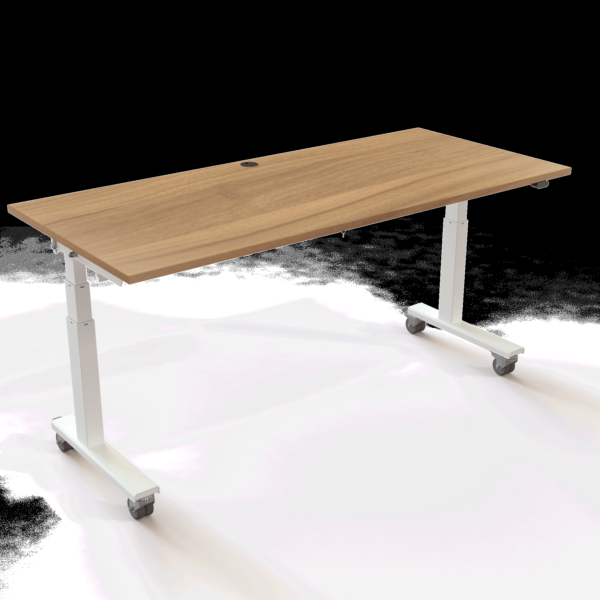 Det praktiske design fokuserer på det væsentlige med en stabil, rektangulær opbygning fra fod til top. Med integrerede kvalitetshjul er dette højdejusterbare arbejdsbord skabt til at blive flyttet mange gange dagligt. Gør bordet uafhængigt af stikkontakter med et batteri (tilkøb) og brug den medfølgende kabelbakke til ledningsstyring