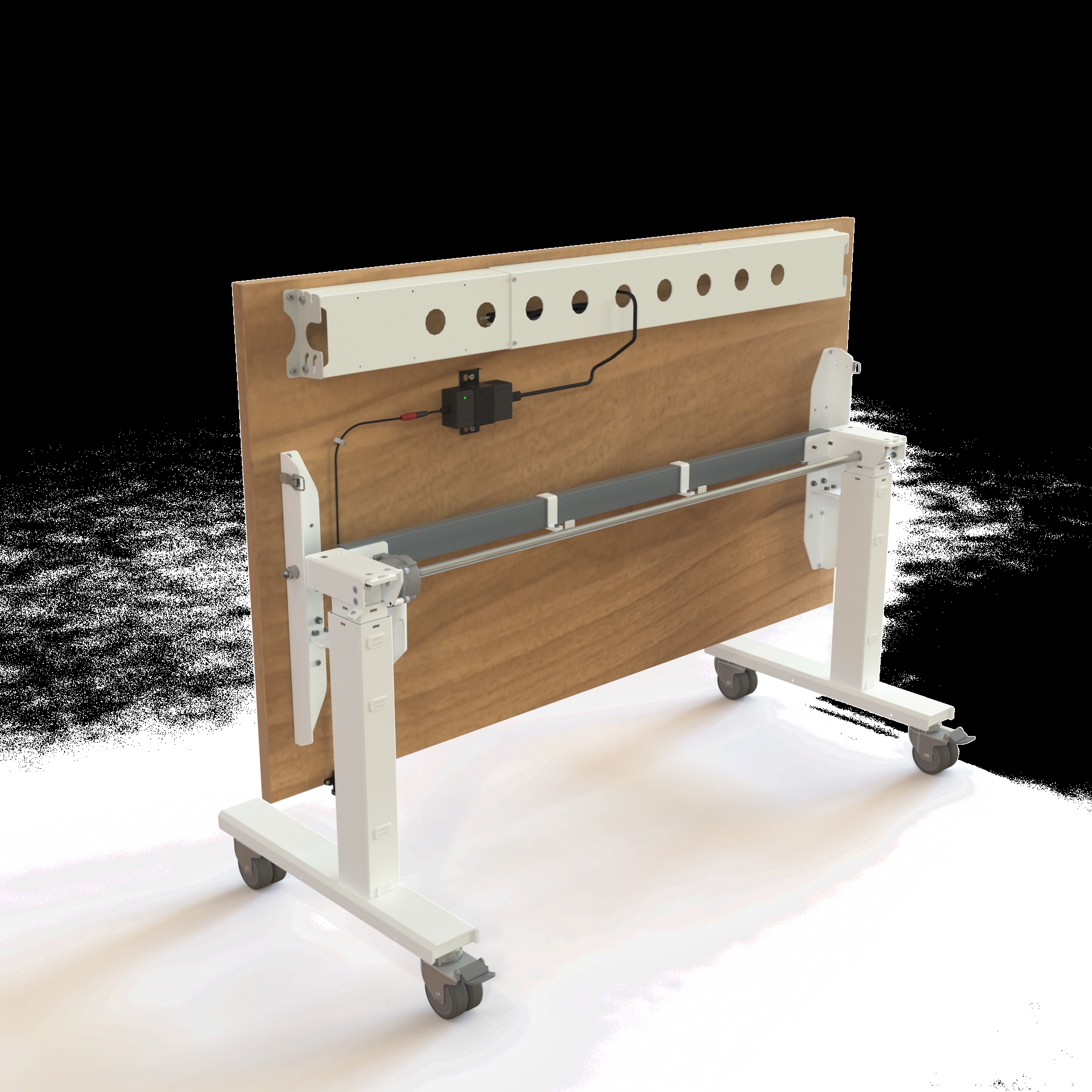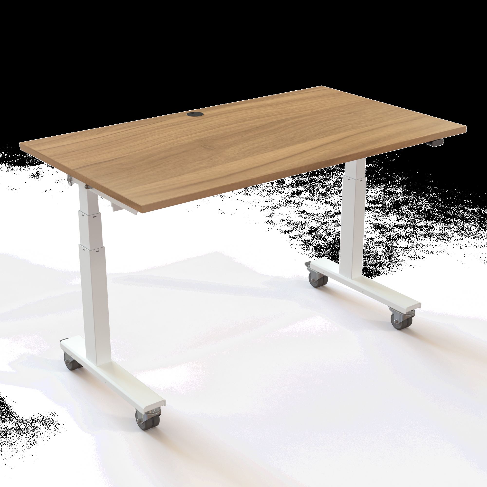 Bordet løfter op til 40 kg og kan justeres mellem 67-132 cm, hvilket eliminerer bekymringen for, at hjulene gør bordet for højt til en korrekt siddestilling. Understellet i pulverlakeret stål RAL 9016 (hvid) bærer den solide melamin-bordplade, der er kendetegnet ved sin høje slidstyrke.