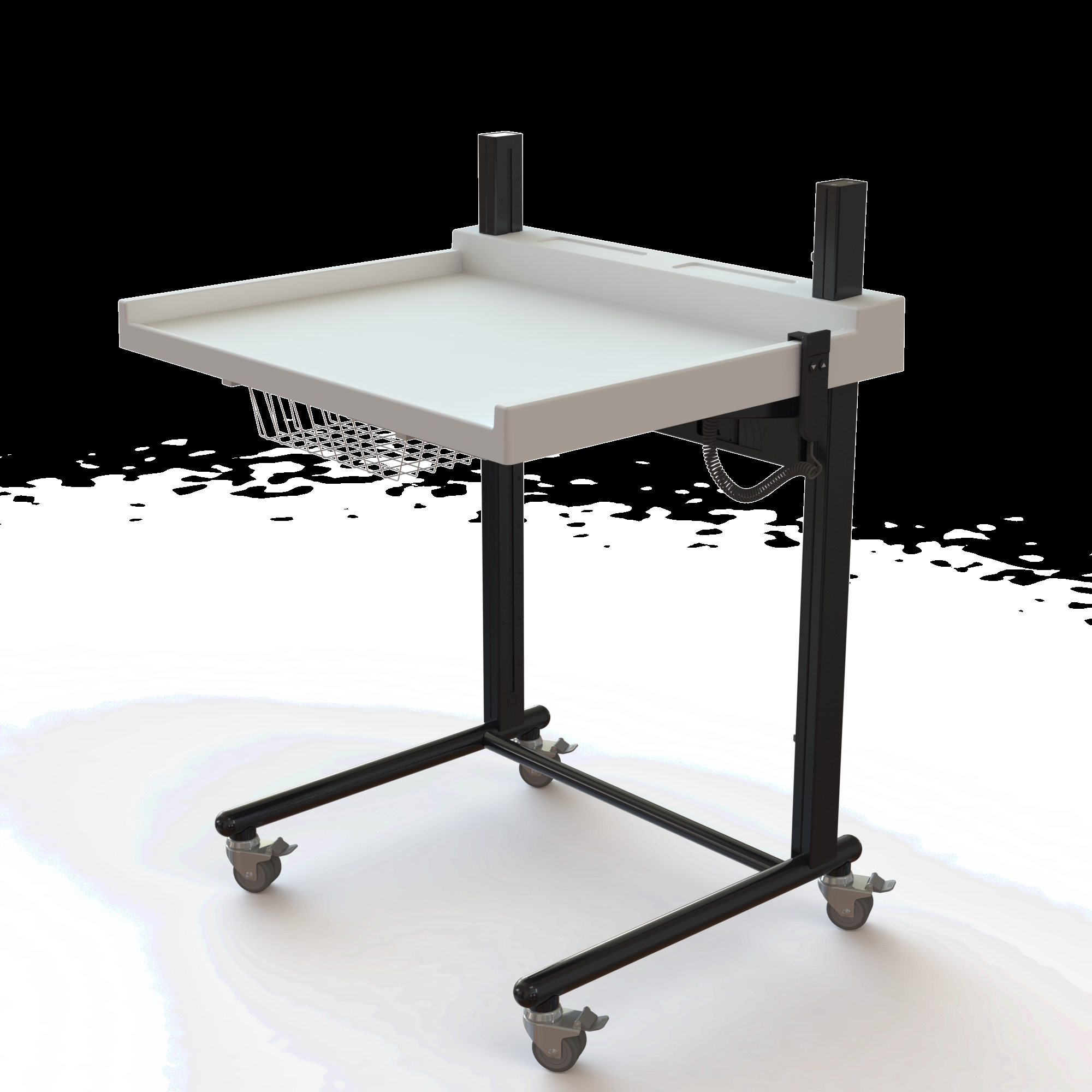 Fritstående puslebord på hjul med hæve/sænkefunktion i professionel kvalitet fra Conset.