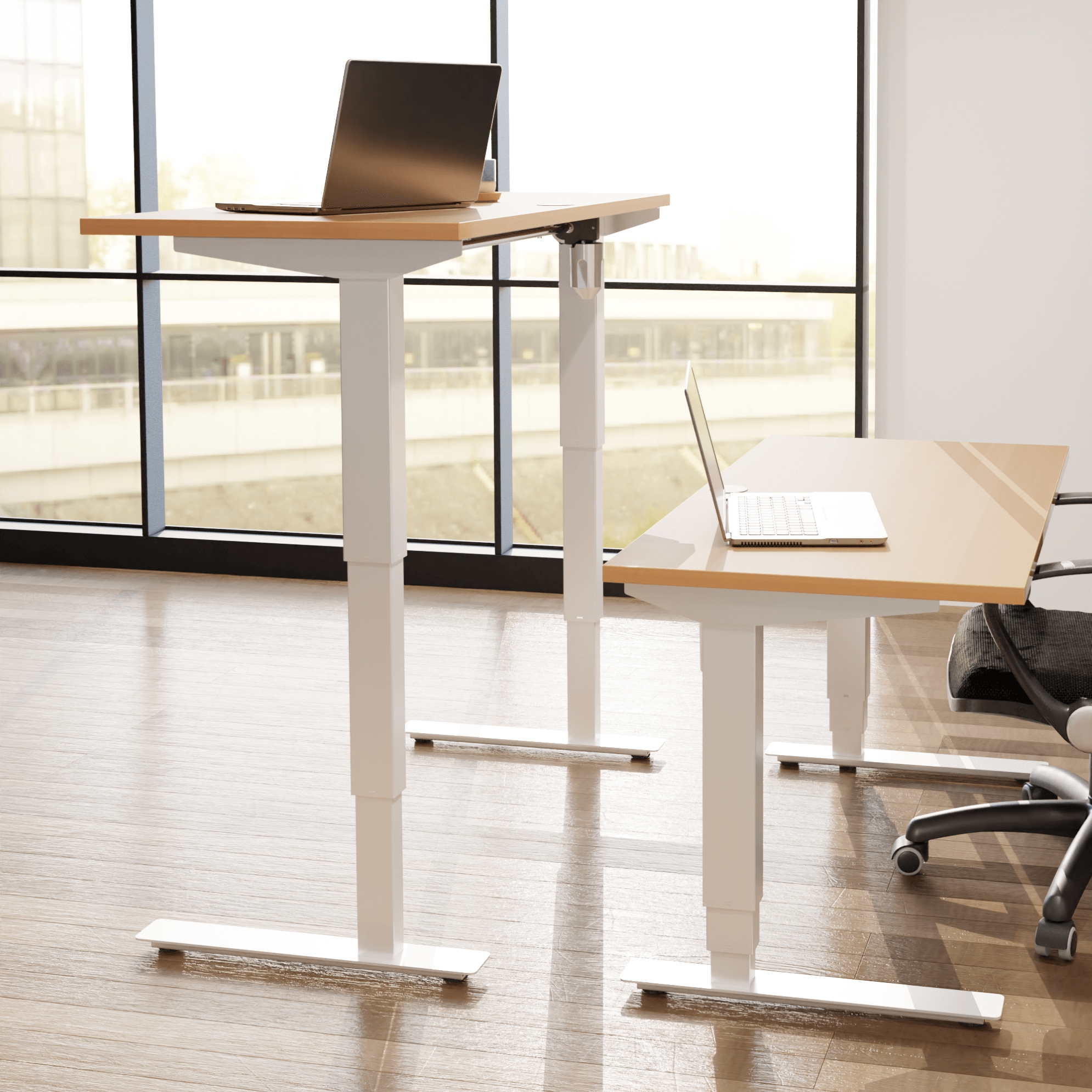 501-37 Børne/junior hæve/sænkebord 100x60 cm i bøg/hvid fra Conset Miljøbillede af 501-37 Børne/junior hæve/sænkebord 100x60 cm i bøg/hvid fra Conset Nærbillede af stellets fod i hvid.Nærbillede af betjeningspanelet under bordplade i bøg.