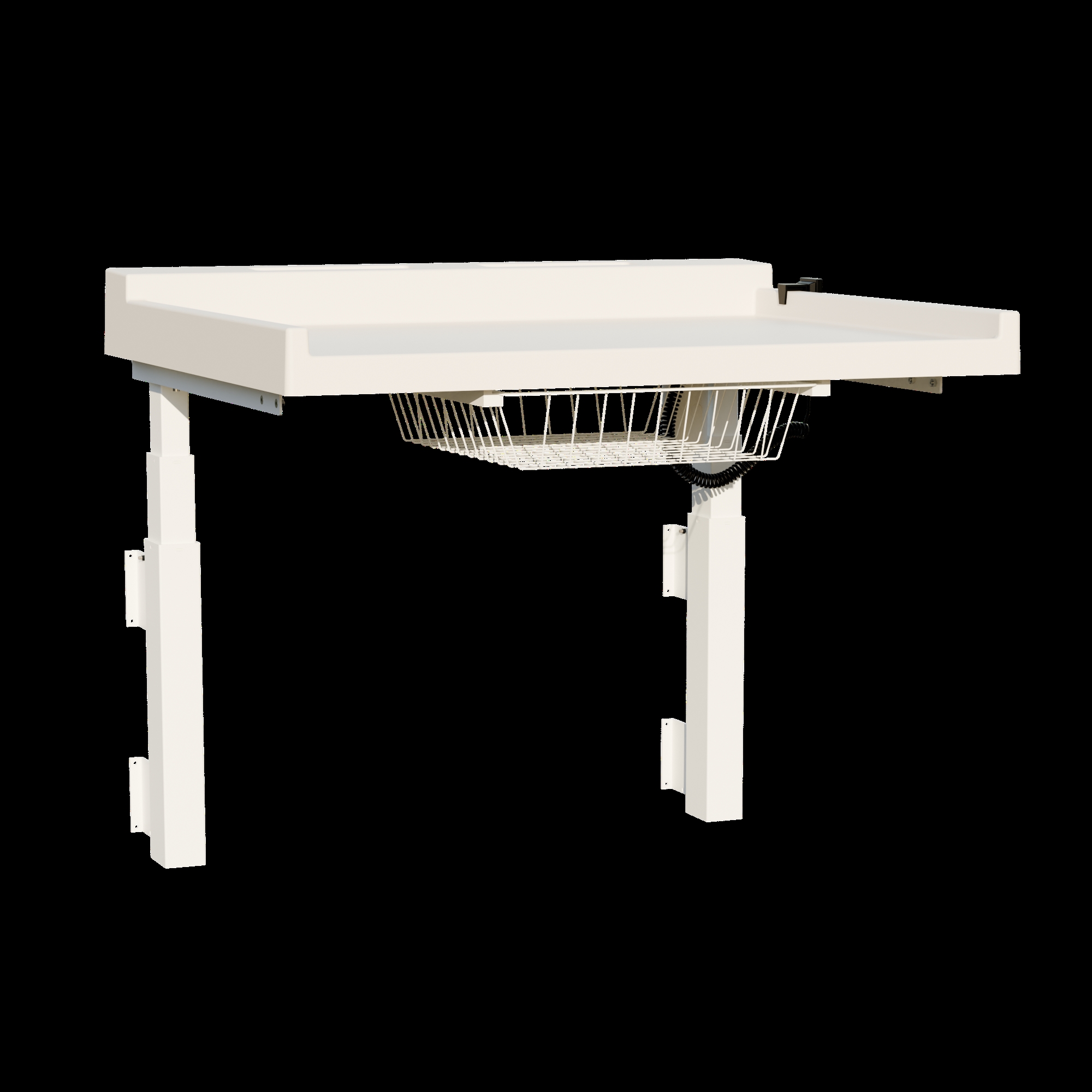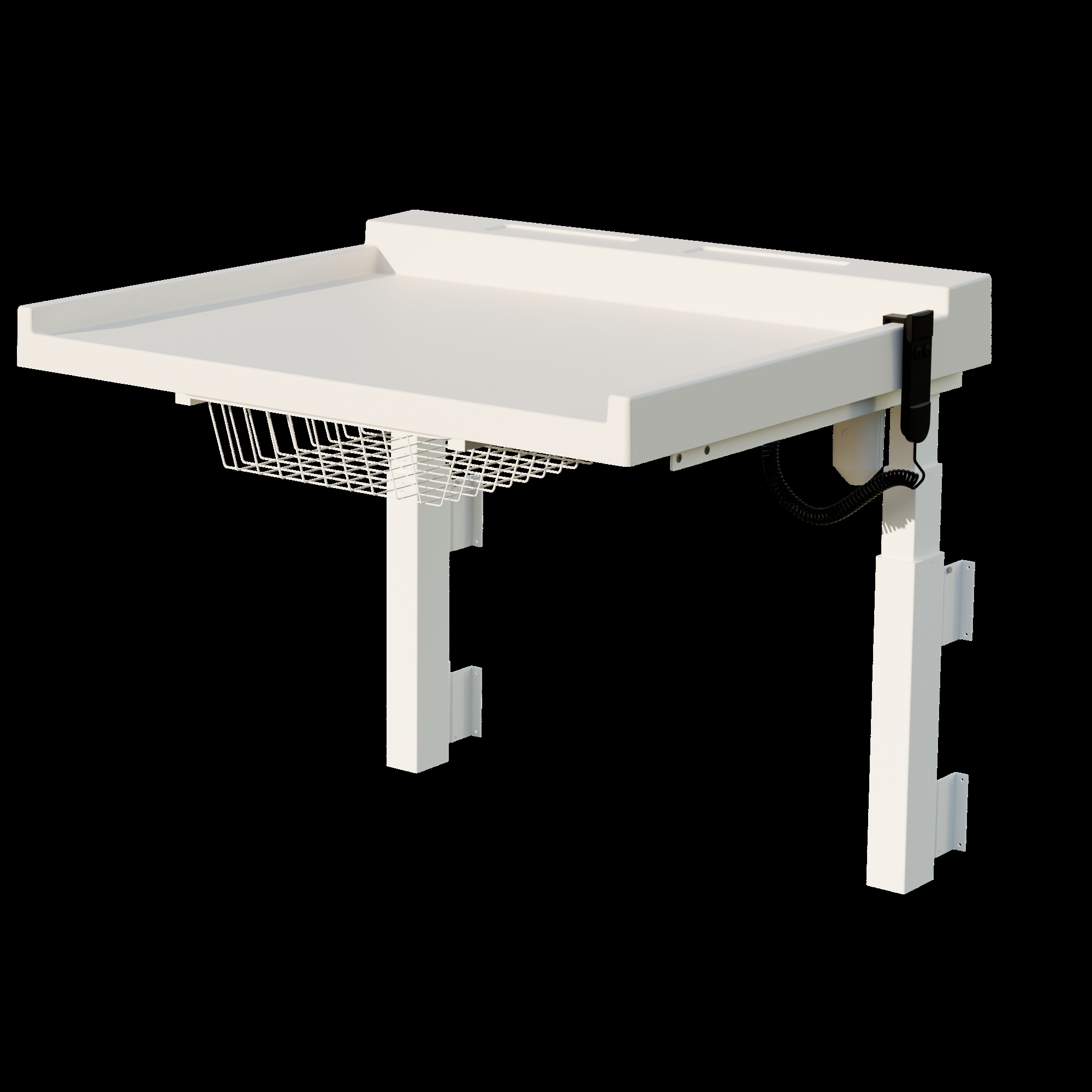 Vægmonteret puslebord med hæve/sænkefunktion i professionel kvalitet fra Conset.