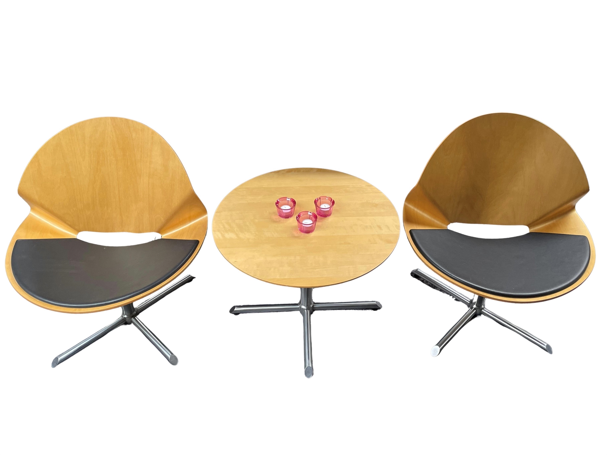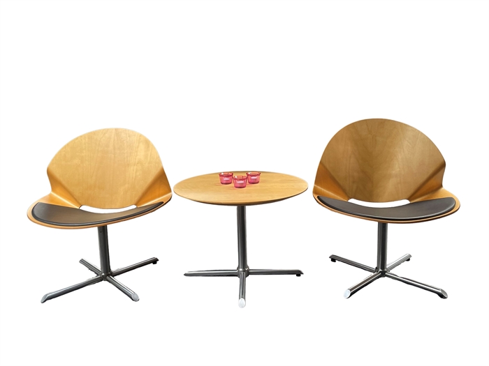 Elegant loungestole sæt fra Christina Hvass, model Rex i birk med poleret rustfritstål stel.