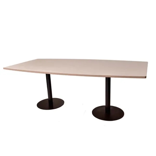 Van Doren konference-/mødebord fra FTI i flot og enkelt design med plads til 6 personer. Bordet er med 25 mm tyk plade i decor laminat i hvid, antracitgrå, bøg eller ahorn. Bordpladen er tøndeformet, måler 90/110×210 cm. Stellet består af to søjleben med pladefod i krom eller sort.