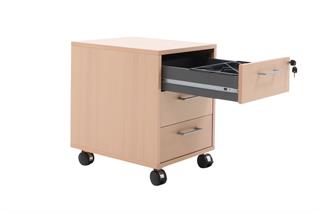 Pænt skuffedarium på hjul med 3 skuffer. Skuffendariet har et tidsløst design. Øverste skuffe er udstyret med pennebakke i sort plastik som er nem at rengøre.