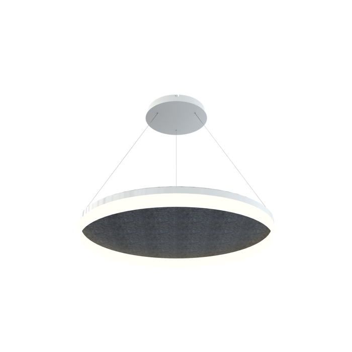 Elegant lydabsorberende loftslampe fra Design by Grönlund med tre karakteristika: Akustisk dæmpning, godt lys og et stilfuldt design. Simpelt moderne udtryk med rene linjer der kombineret med behageligt lys reducerer støjniveauet i det rum, den hænger i. Acoustic Circulo fås i 3 størrelser (Ø60, Ø80 og Ø120 cm) - 4 farver (hvid, lysegrå, mørkegrå og sort) samt to lysfarver (3000 og 4000 Kelvin).