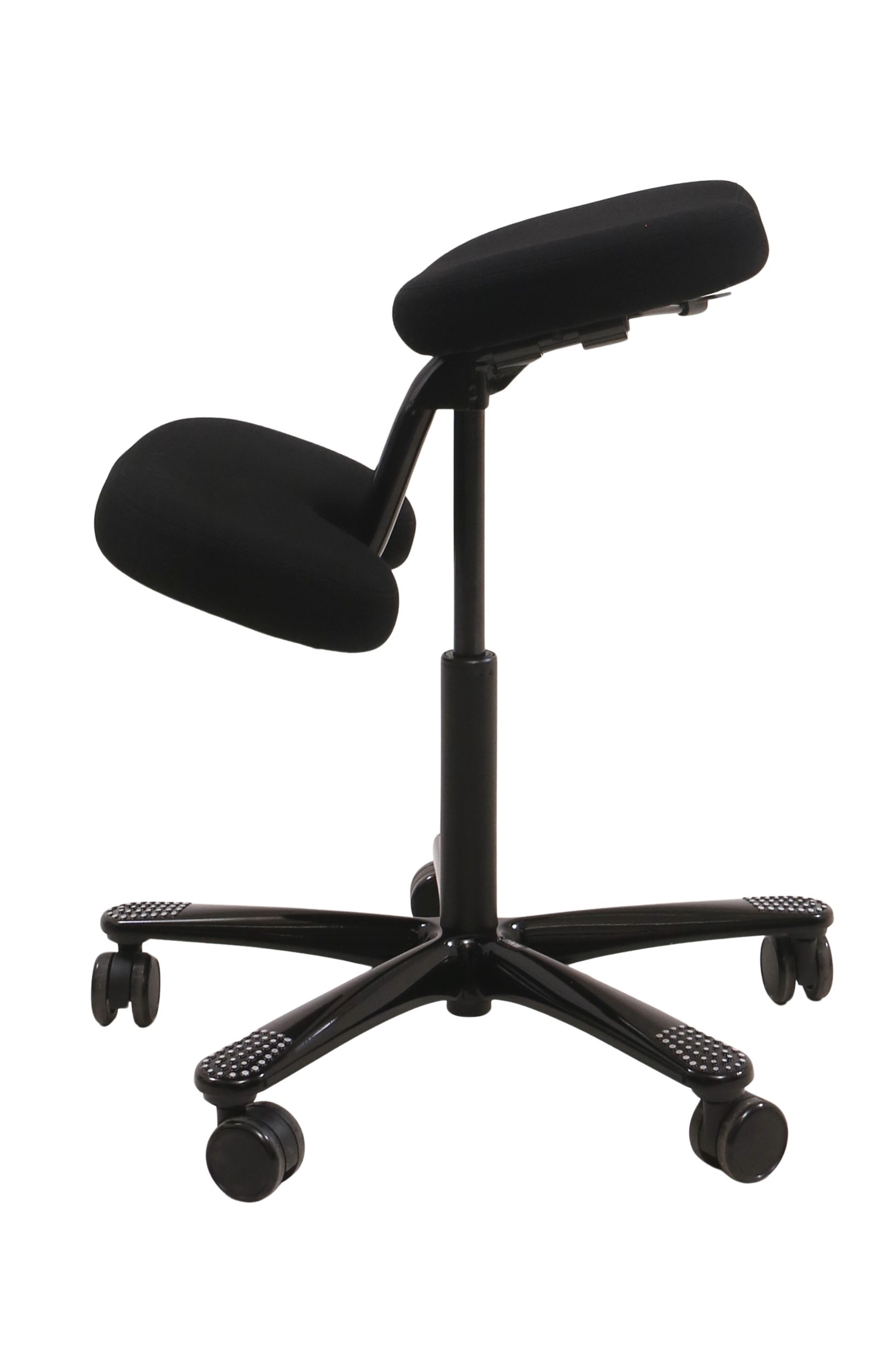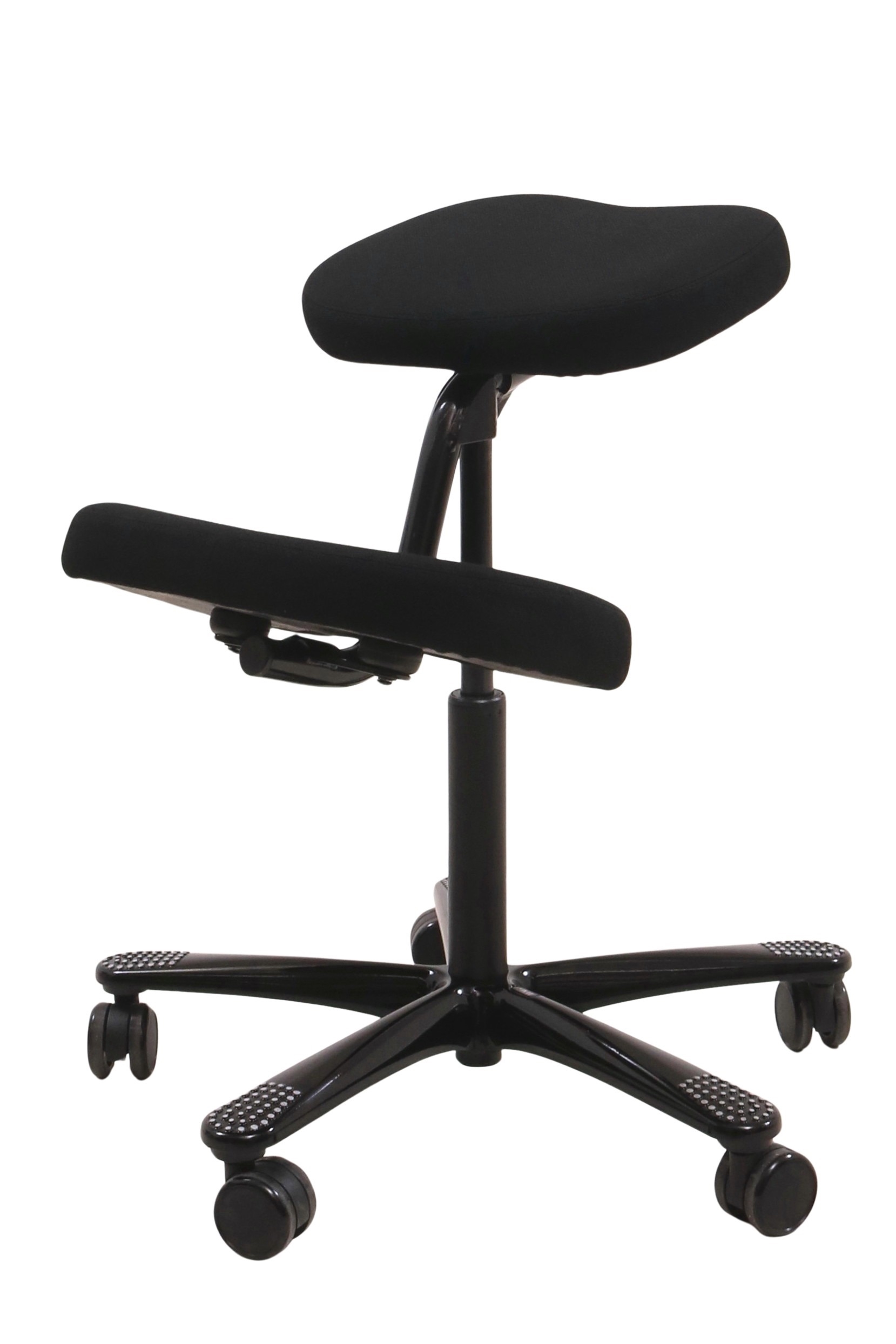 Håg Balans Vital 6035 knæstol i sort set forfra i en skrå vinkel.