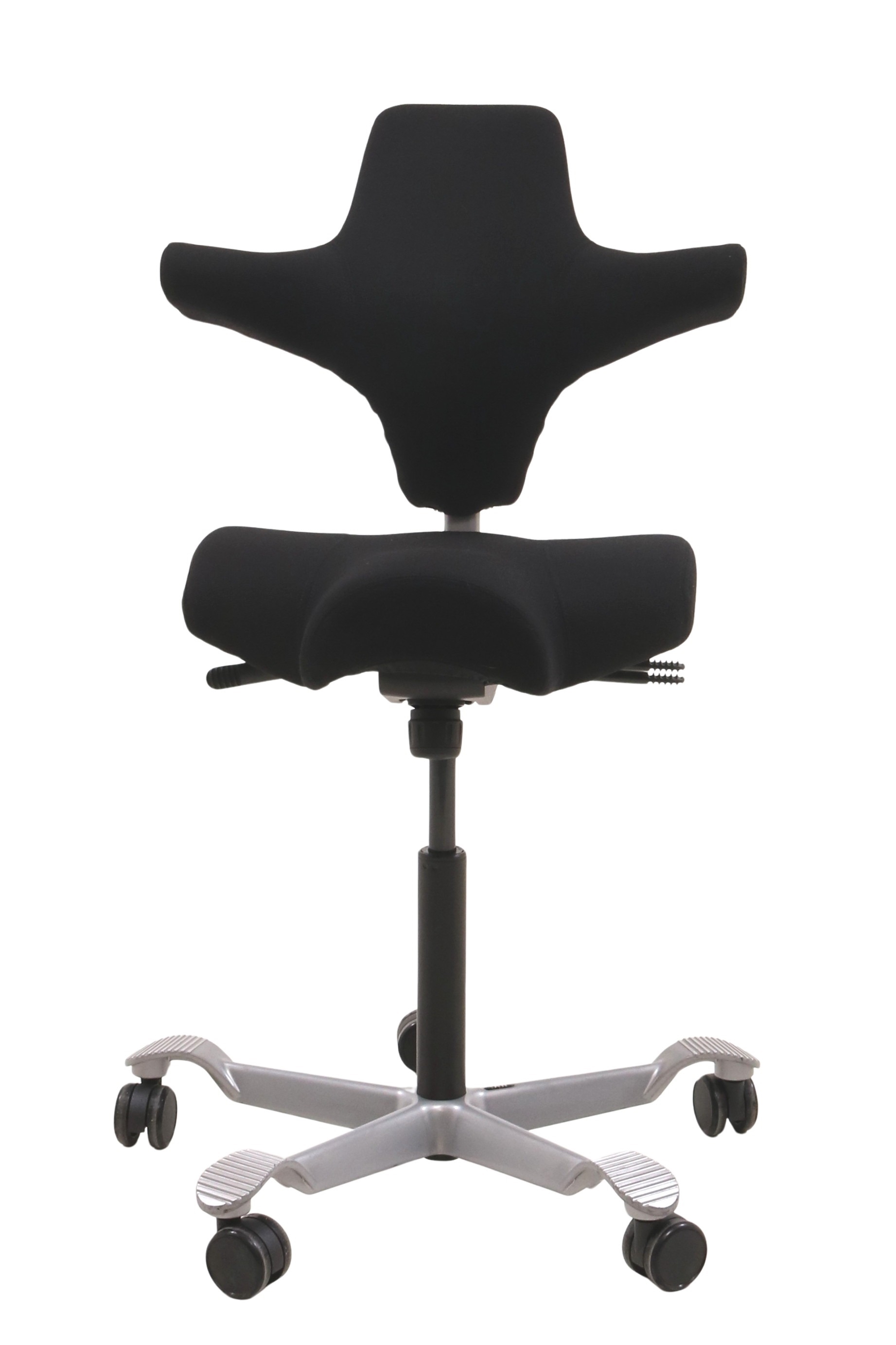 Håg Capisco 8106 kontorstol i sort set forfra i en skrå vinkel.