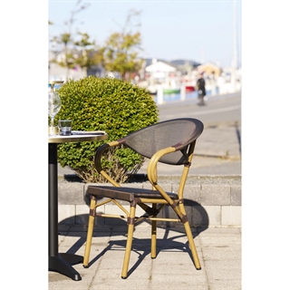 Spisebordsstol, aluminium/textilene, mørkebrun, bambuslook ben
