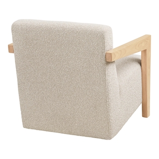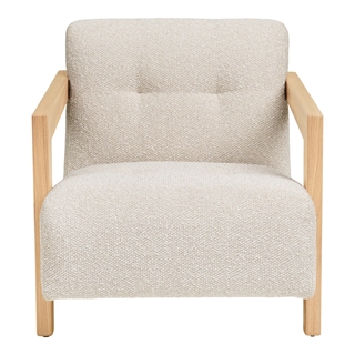 Caracas loungestol i beige med træarmlæn – moderne lænestol til stuen