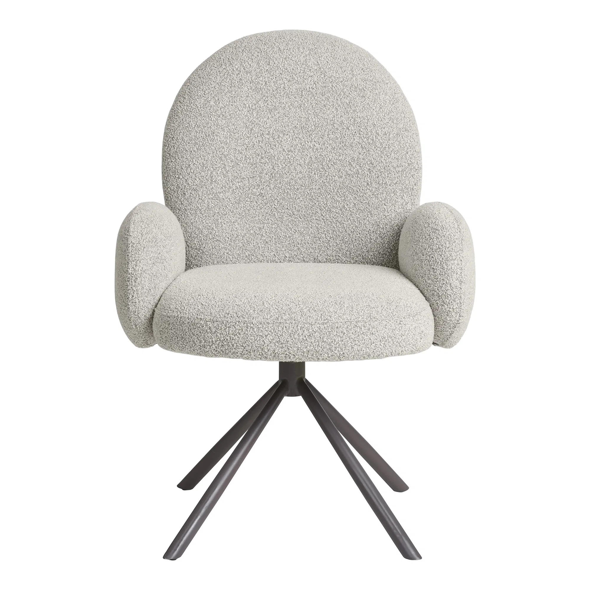 House Nordic - Lana - Spisebordsstol m/armlæn i bouclé m. Drejefod (sandfarvet/grå)