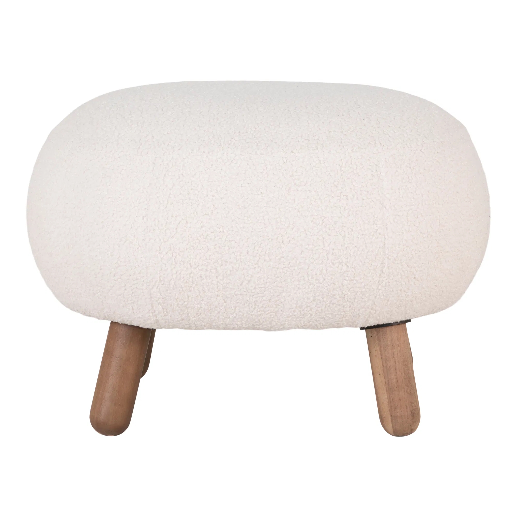 House Nordic Savona loungesæt med komfortabel stol og puf i hvidt stof. Nordisk design, ergonomisk polstring og tidløs elegance til stuen eller læsehjørnet.