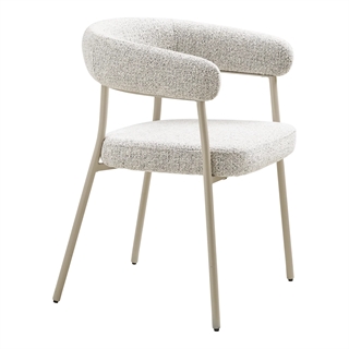 Spisebordsstol, sand, grå ben. Stolen er udført i et klassisk design med fuldtbetrukket sæde og ryg og tynde, elegante ben.