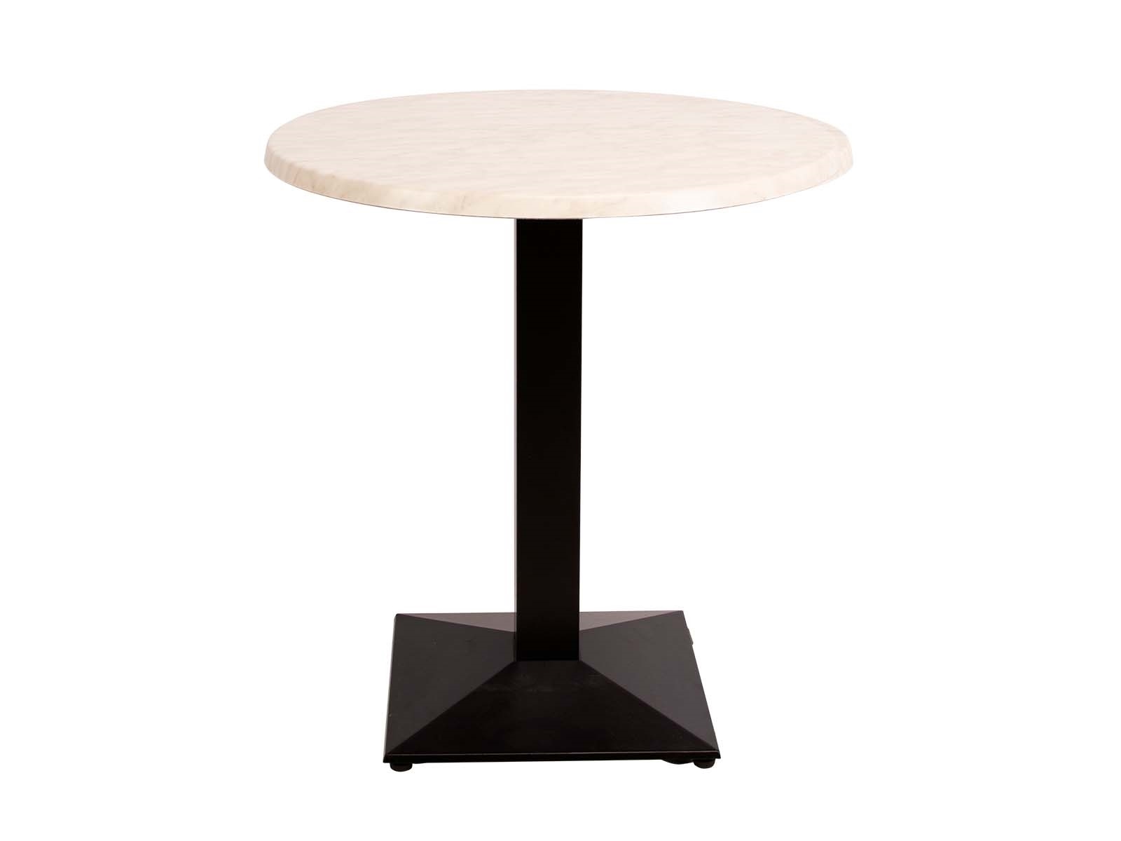 Det elegante Bistro laminatbord i rundt design med hvidt marmorudtryk, der efterligner det lyse og raffinerede udseende af ægte marmor. Dette vedligeholdelsesfrie bord tilføjer en elegance til ethvert café, restaurant eller altanmiljø. Med sin holdbare konstruktion egner det sig perfekt til både indendørs og udendørs brug, hvilket gør det til det ideelle valg for enhver lejlighed. Bistro bordet er her forsynet med Dallas Café base også fra House of Sander, der giver et moderne og professionelt udtryk. Stellet et robust og stilrent stel fremstillet i sortlakeret stål med firkantet fod. Dette cafébord-stel er ideelt til både restauranter, caféer og private hjem, hvor holdbarhed og æstetik går hånd i hånd.