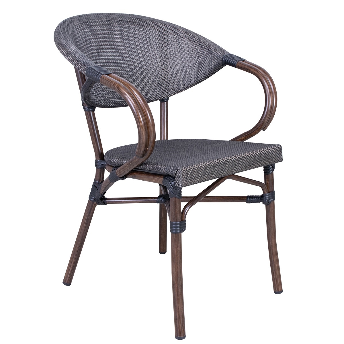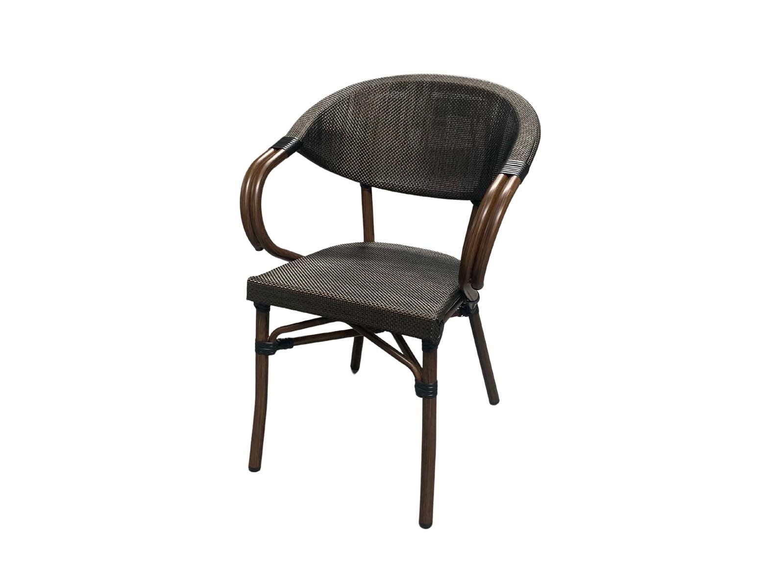Paris Café-, kantine- og havestol med armlæn i brun med alu-stel fra House of Sander.