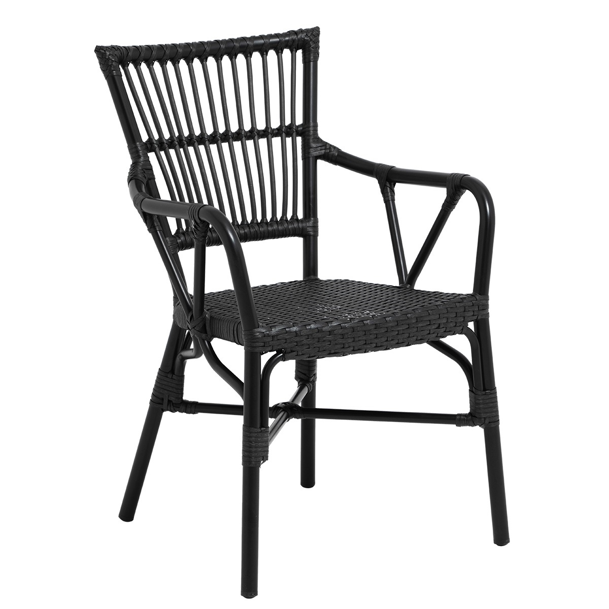 Aaron Café-, kantine- og havestol med armlæn i sortmed sort alu-stel fra House of Sander.