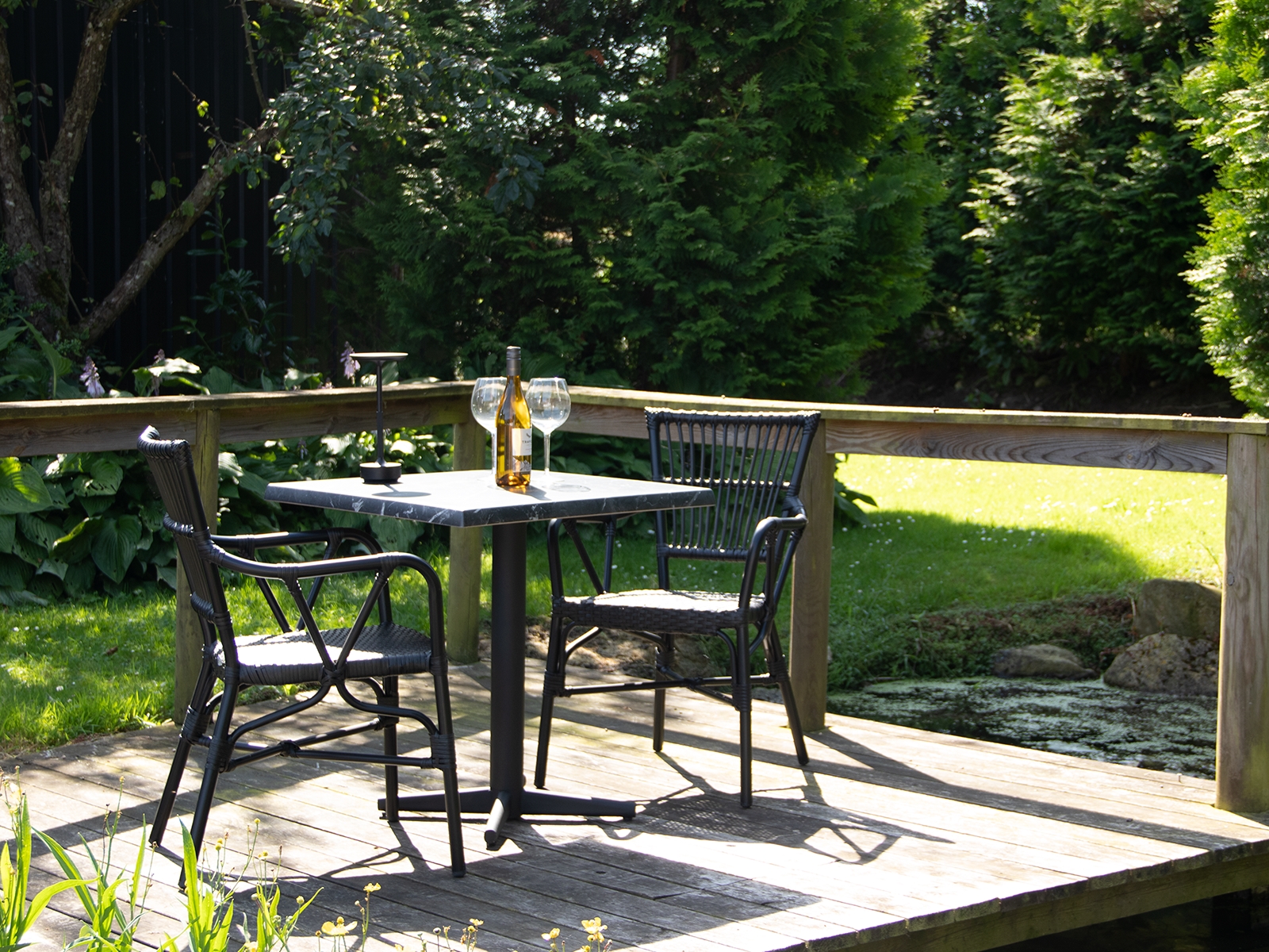 Miljøbillede med Aaron Café-, kantine- og havestol med armlæn i sort med sort alu-stel fra House of Sander.Miljøbillede med Aaron Café-, kantine- og havestol med armlæn i sort med sort alu-stel fra House of Sander.