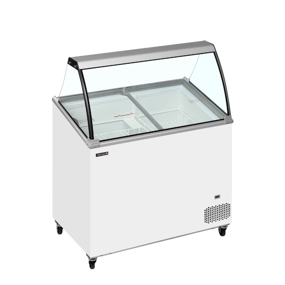IC-SO er en serie af isdiske i god kvalitet til en konkurrencedygtig pris. Modellen har skydelåg i glas, der giver let adgang til isen, når kunderne skal serviceres, samt hjælper med at isolere, når fryseren ikke er i brug. Den har en glastop med buet front, og så er fryseren ideel til dekorering, hvis du ønsker at skabe blikfang. Fryseren er optimeret til at indeholde 5 l plastikbeholdere i toppen og have god plads til opbevaring nedenunder.