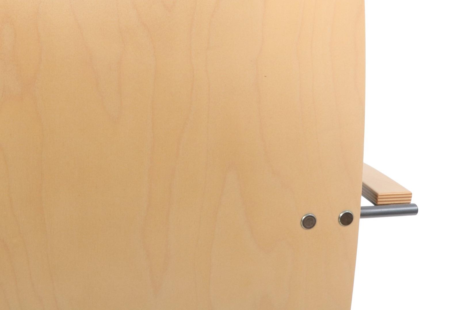 Mødestol i birk set forfra.Mødestol i birk set fra siden af.Mødestol i birk set bagfra.Mødestol i birk set tæt på ryggen.Udsnit af sort stof.