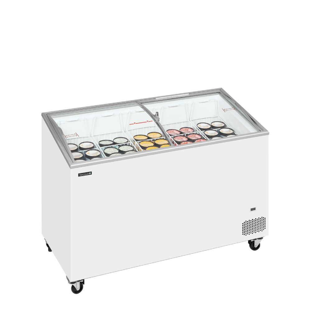 IC-SCEB byder på pålidelige isdiske i en god kvalitet til en konkurrencedygtig pris. Serien er et godt valg til iværksættere, sæsonsalg m.m., hvor man gerne vil øge salget af is uden at springe budgettet. Den har buede skydelåg i glas, som giver et godt overblik over indholdet samt et komplet sæt kurve, klar til at blive fyldt med lækker is. Enheden er på hjul og kan derfor let flyttes til en anden placering.