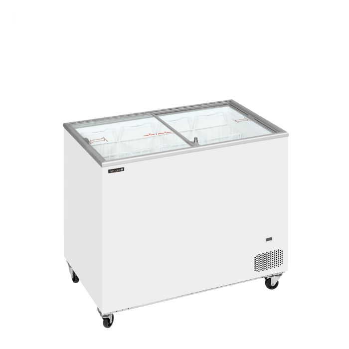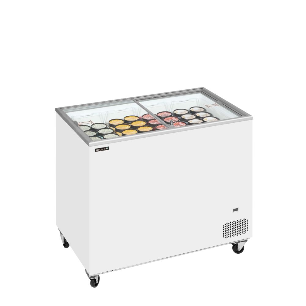 IC-serien byder på pålidelige isfrysere i en god kvalitet til en konkurrencedygtig pris. Serien er et godt valg til iværksættere, sæsonsalg m.m., hvor man gerne vil øge salget af is uden at springe budgettet. Den har flade skydelåg i glas, som giver et godt overblik over indholdet samt et komplet sæt kurve, klar til at blive fyldt med lækker is. Enheden er på hjul og kan derfor let flyttes til en anden placering.