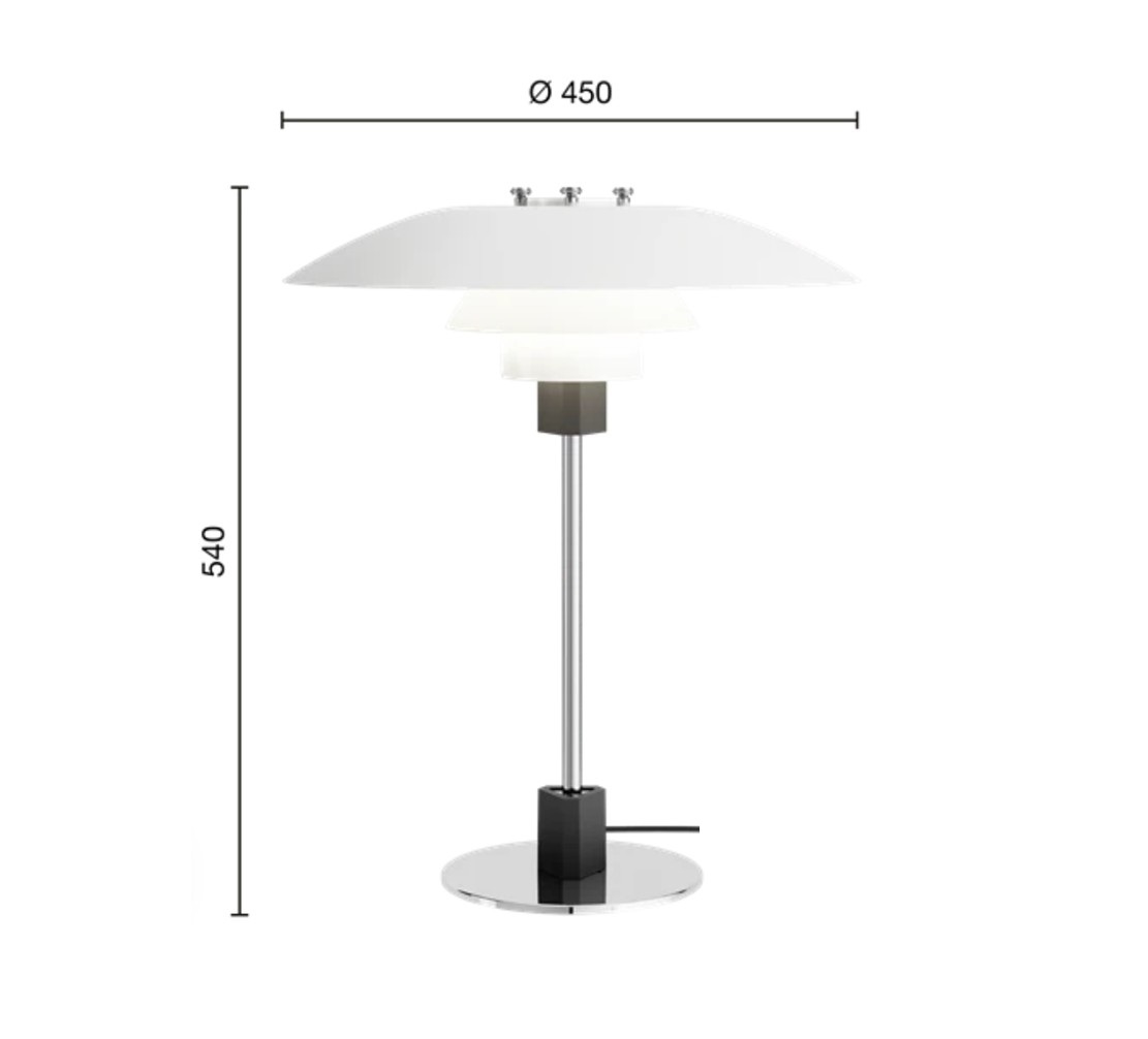 Model PH 4/3 bordlampe er designet af Poul Henningsen, han havde designet 3-skærmssystemet allerede for 100 år siden i 1925-26.