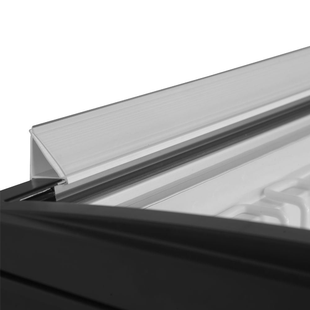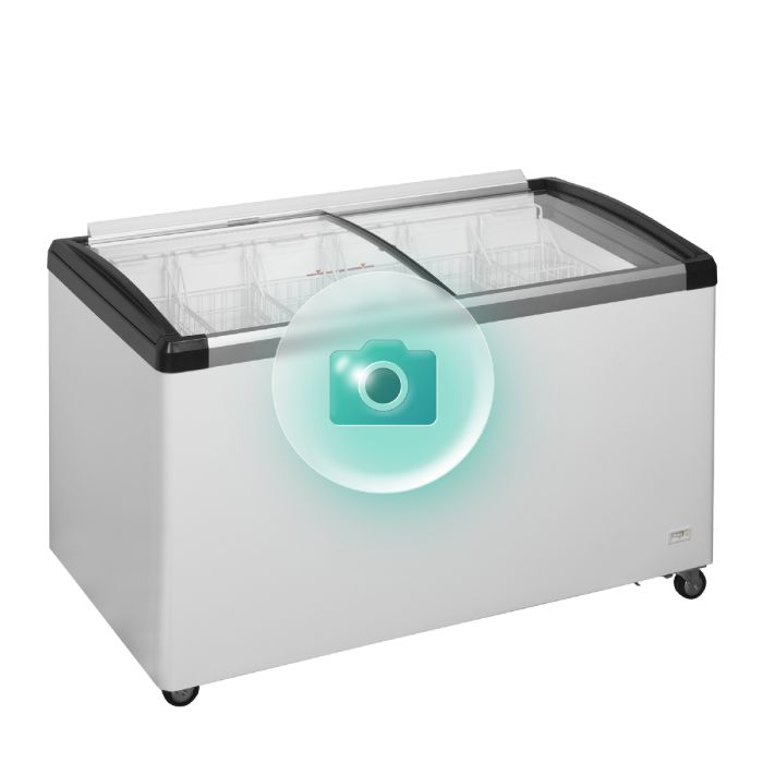 IDB-serien af isfrysere er solidt bygget med en aluminiumsramme foran og bagpå. De let buede glasskydelåg har robuste håndtag, der også fungerer som ender på den øverste ramme, hvilket lukker fryseren tæt og forhindrer luft i at trænge ind og ud. Den har en fantastisk LED-belysning placeret foran, der fremhæver de frosne varer, og den leveres med et komplet sæt kurve.
