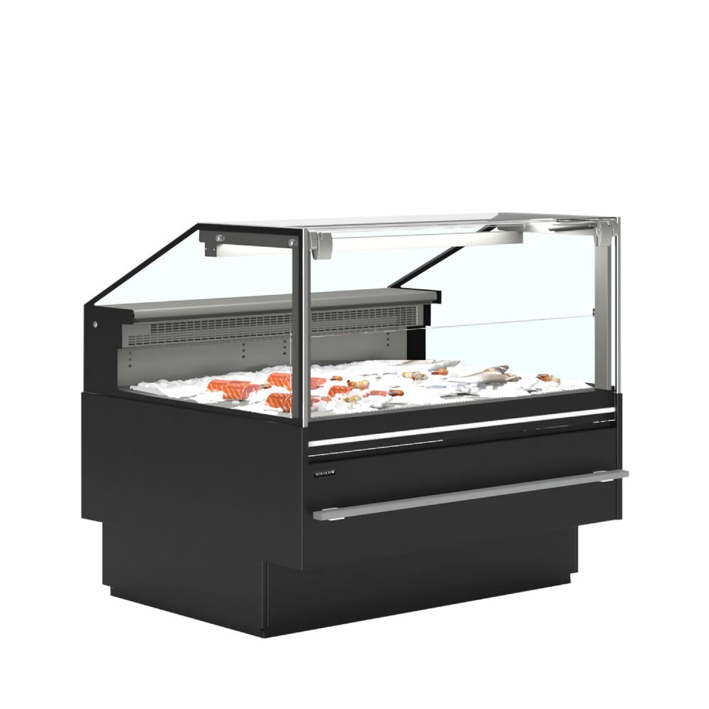SOCA-F-serien af betjeningsdiske er specielt designet til fremvisning af frisk fisk på is. Dækpladen i rustfrit stål i disse enheder er derfor udformet som en 50 mm dyb bakke, der kan rumme isen. Frontglasset kan løftes op for nem rengøring, og glasset er med antidug egenskaber. Tilpas med tilbehør og multiplex for at få en komplet diskløsning.