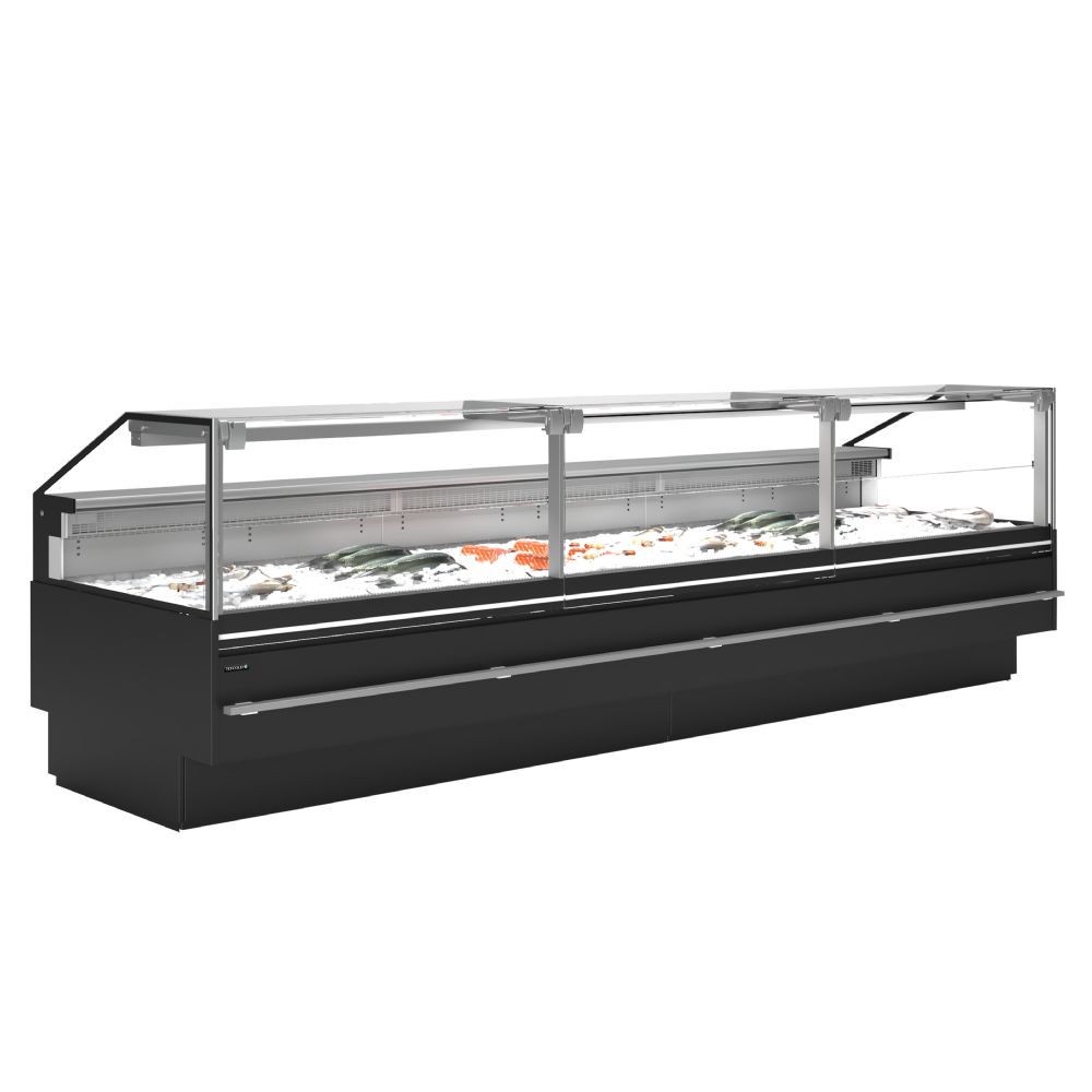 SOCA-F-serien af betjeningsdiske er specielt designet til fremvisning af frisk fisk på is. Dækpladen i rustfrit stål i disse enheder er derfor udformet som en 50 mm dyb bakke, der kan rumme isen. Frontglasset kan løftes op for nem rengøring, og glasset er med antidug egenskaber. Tilpas med tilbehør og multiplex for at få en komplet diskløsning.