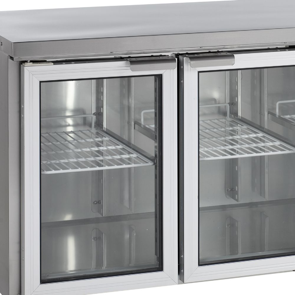 Nyt design, Rustfrit stål, Automatisk afrimning, Selvlukkende glasdøre, Aftagelig bordplade, Justerbare ben, Ventileret køling
