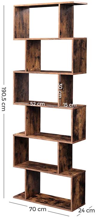Vasagle - Bogreol 70x24x190,5 (Rustik brun) "SPAR 26%"