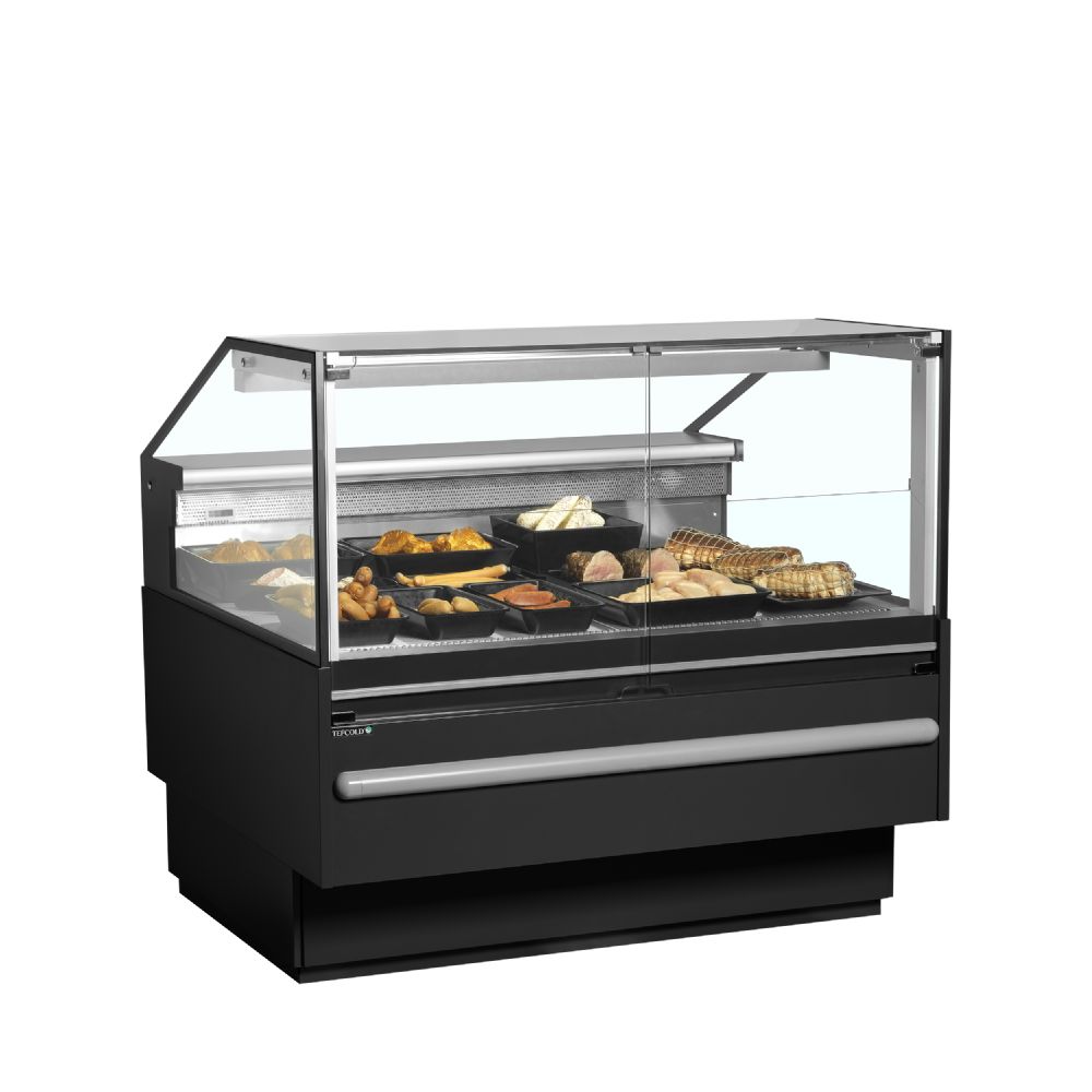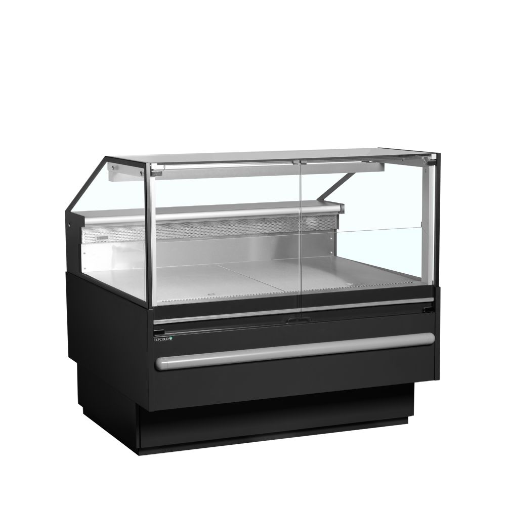 Sort design|Fremragende produktsynlighed|825 mm dyb dækplade i rustfrit stål|Frontglas med anti-kondens|Glasfront åbnes udad fortil for nem rengøring|Rustfri stålhylde på bagsiden|Ventileret køling|Temperaturklasse 3M1|LED toplys|2 x 220-240V stikkontakter på bagsiden|Multiplexing-sæt er tilbehør|Fenderlister